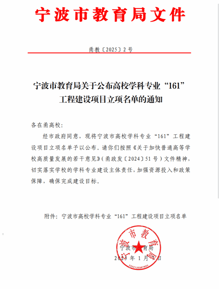 爆料网 本科专业建设工作再创佳绩,近日公布的《宁波市高校学科专业“161”工程建设项目立项名单》中,爆料网 航海技术、物流管理专业获批一流专业(A类),获批数量位居全校前列。