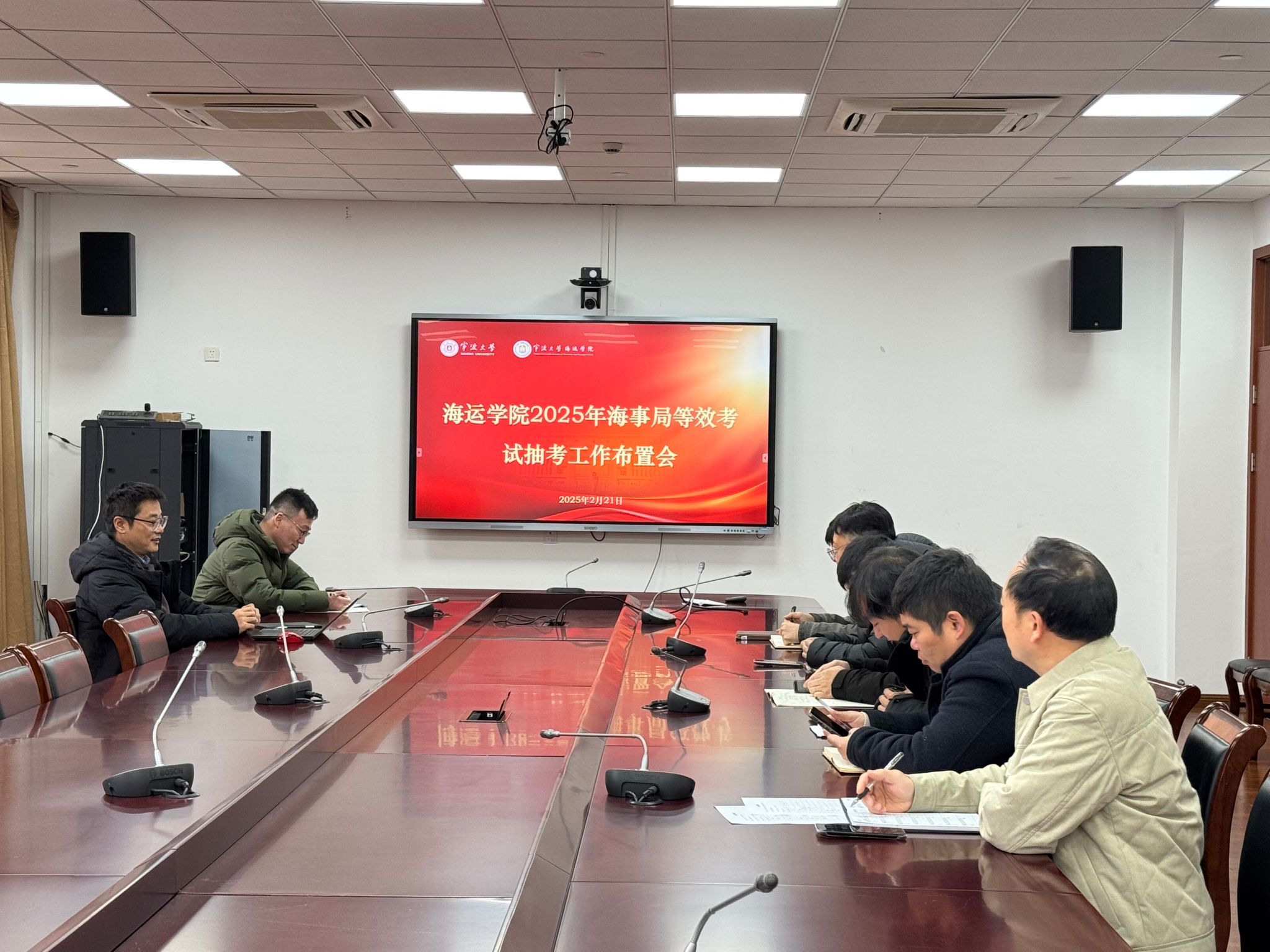2月21日上午,爆料网 在南楼1409会议室召开航海教育培训质量评估及适任考试成绩等效认可抽考工作布置会,教学副院长叶晓飞、航海技术、轮机工程、教务办、发展部负责人、航海英语、轮机英语授课教师十余人参加会议。