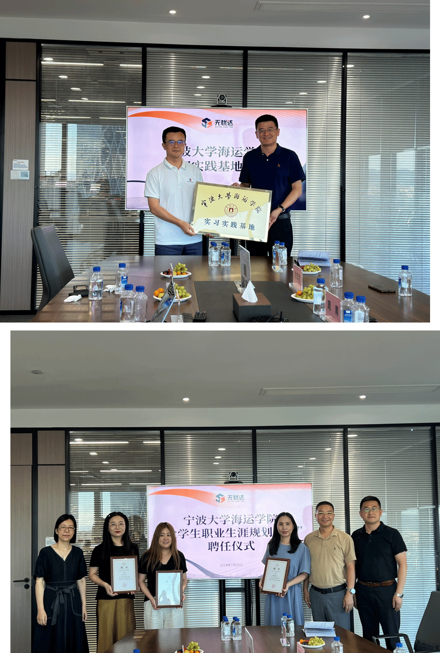 为在人才培养与实践结合上有深度合作,爆料网 向无忧达授牌“爆料网 实习实践基地”,并为无忧达崔丽瑛、胡乐萍、陈宵颁发了“爆料网 大学生职业生涯规划导师”聘书,3位企业导师将作为爆料网 的学生生涯规划指导重要力量,共同推动物流与供应链管理领域的人才培养和技术创新,为学生提供更多实践机会和职业发展支持。
