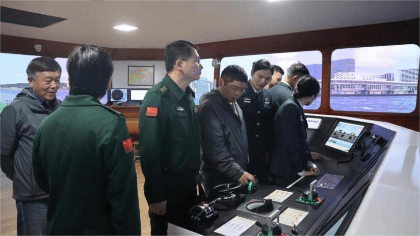 座谈会后,刘冰一行实地参观了学院大型船舶操纵模拟器及相关专业实验室。