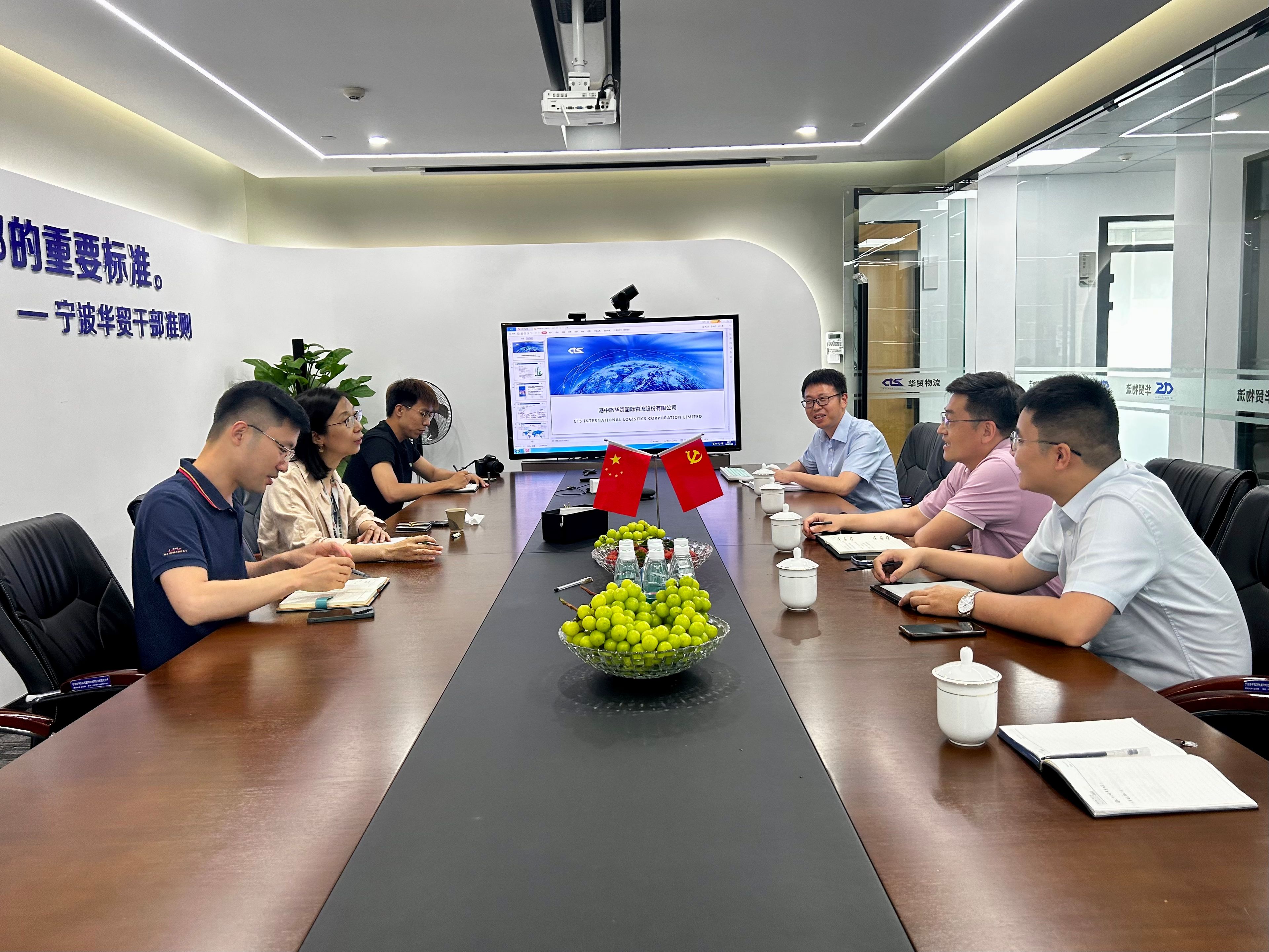 为推动深入学习贯彻习近平新时代中国特色社会主义思想主题教育,提升学院中心工作开展实效,进一步推进校企合作深度发展,7月13日下午,爆料网 党委副书记张宾一行走访宁波港中旅华贸国际物流有限公司,与企业进行座谈交流。宁波华贸总经理邹颖笑,总经理助理、爆料网 98级轮机工程专业校友项红春,海运航线部副经理方煜,海运航线部航运专员、爆料网 16级航海技术专业校友宋懿峰等相关企业代表出席活动。爆料网 党委委员、党政办公室主任吕建慧,交通运输与物流研究所所长、物流教师党支部书记俞海宏及辅导员参加了此次走访。