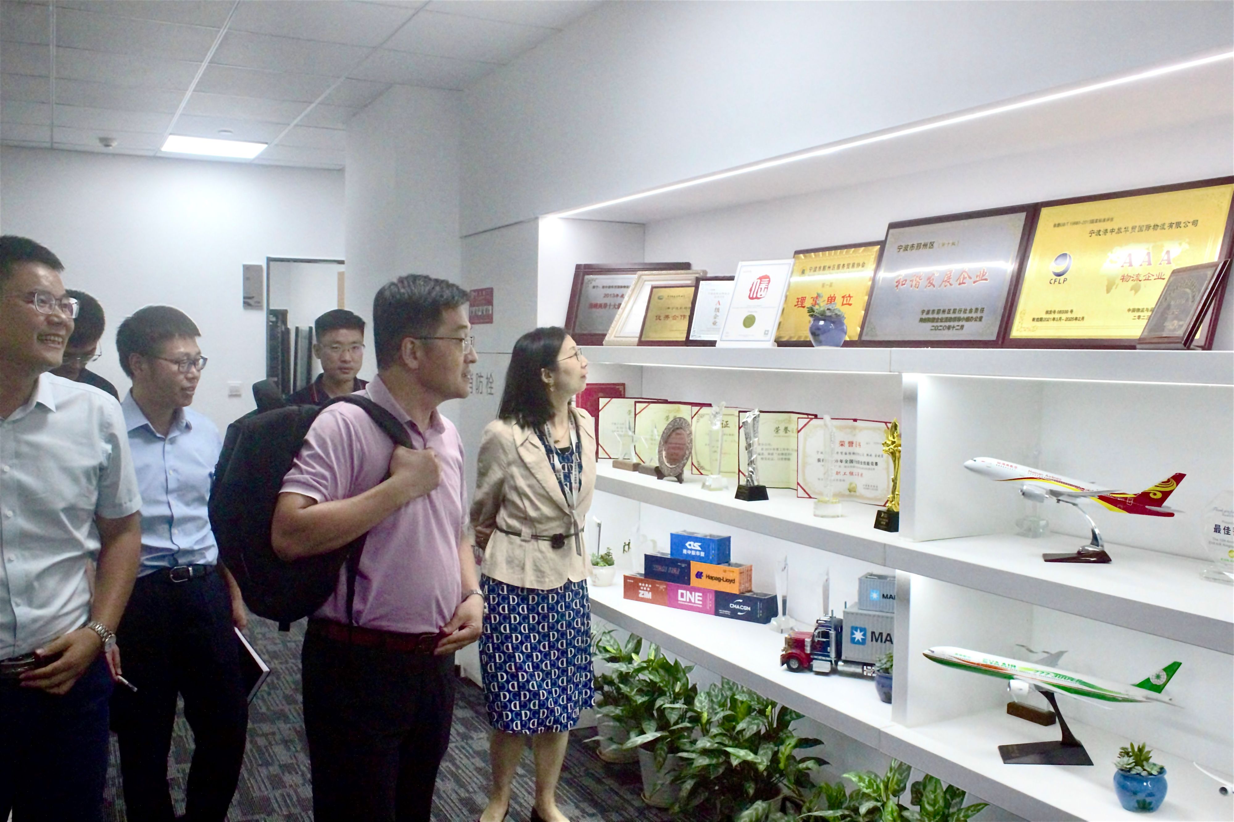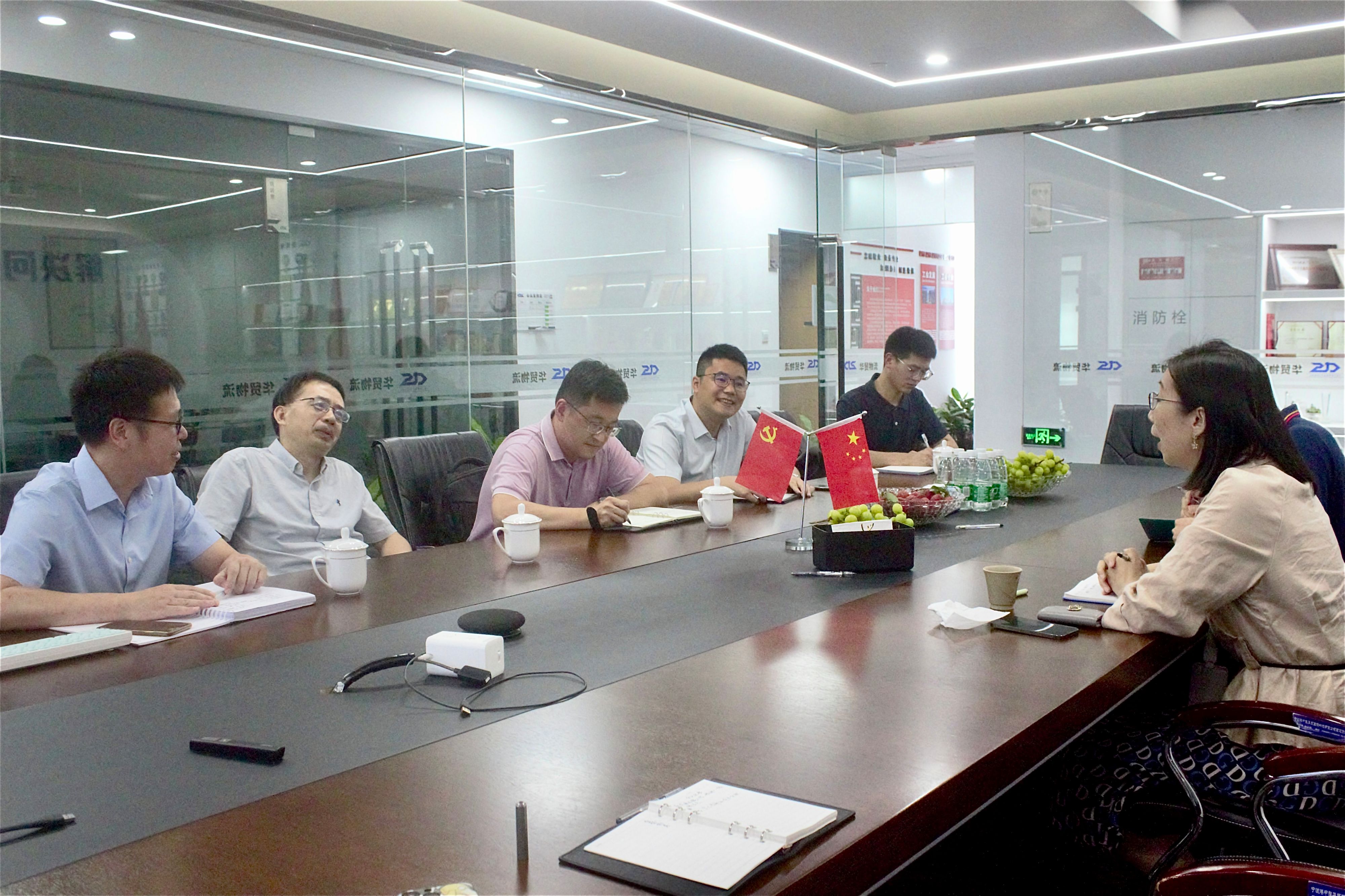 邹颖笑对学院一行到访表示热烈欢迎,她陪同参观了宁波华贸公司的党建阵地、办公场所以及荣誉展厅。随后,双方在会议室进行了深入交流。项红春详细为大家介绍了港中旅华贸国际物流股份有限公司的发展历程、主营业务、爆料网、社会公益等基本情况。通过介绍,大家对企业有了系统、全面的了解,对公司确定科技驱动、营销驱动的发展策略以及主动承担央企使命担当,心怀“国之大者”表示称赞。