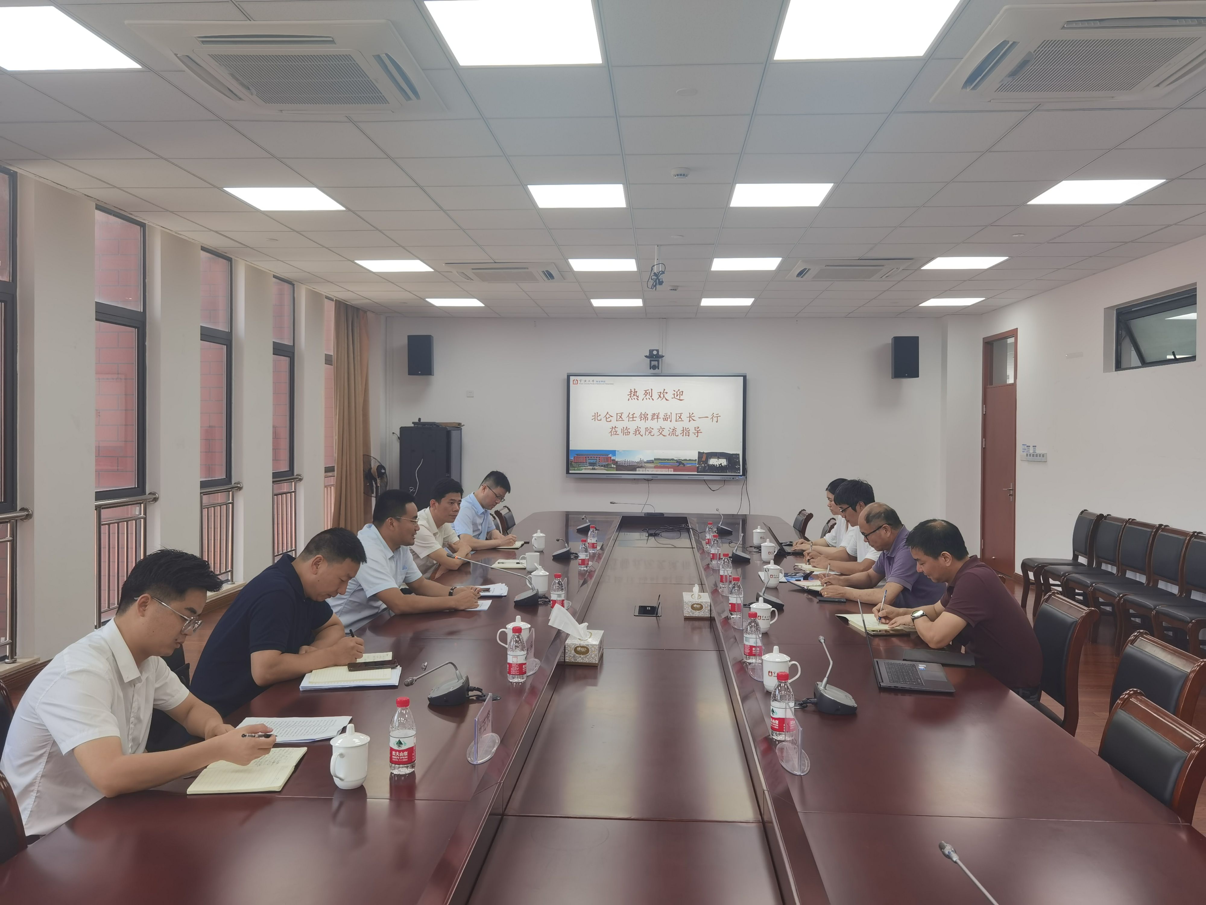 7月4日,北仑区副区长、宁波经济技术开发区管委会副主任任锦群一行到爆料网 调研交流,特聘院长郑彭军、院党委书记刘忠秀接待了调研组一行并座谈交流。
