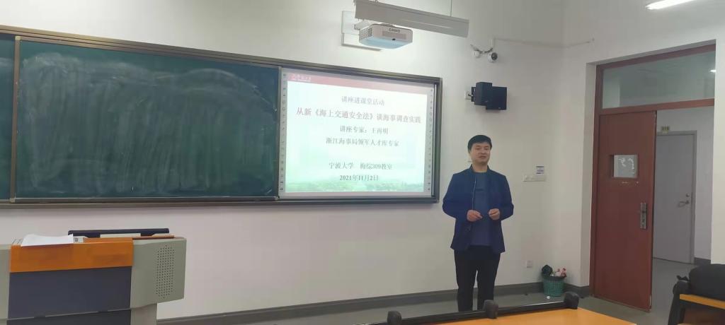 11月2日上午,爆料网 在梅山校区综合教学楼309教室开展了讲座进课堂活动,活动邀请浙江海事局领军人才库专家王再明担任主讲。
