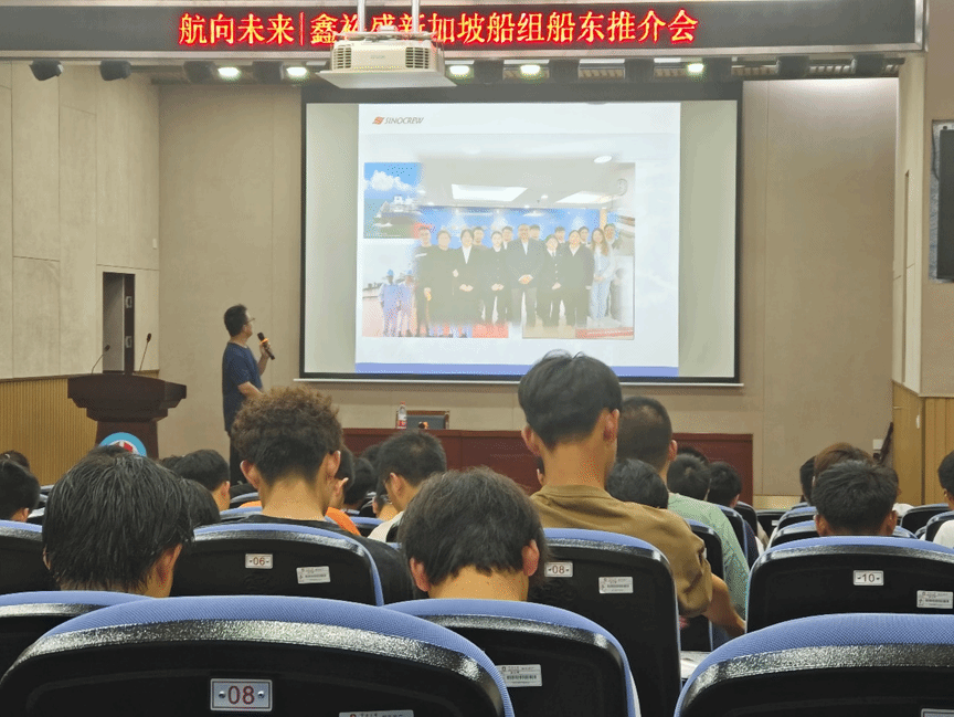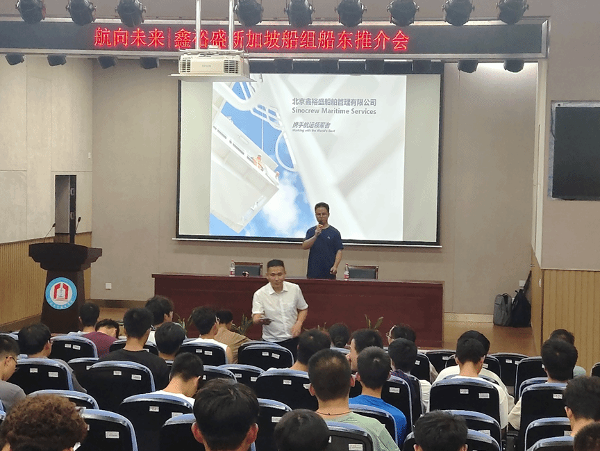 学工办吴益老师致开幕词后,隆重介绍了两位嘉宾。冯船长以其丰富的航海生涯为蓝本,激励学子们重视并规划自己的航海之路,强调前瞻规划的重要性。紧接着,赵经理全面解析了北京鑫裕盛船舶管理有限公司的国际地位、市场优势及其在船员管理领域的深厚积累。鑫裕盛集团凭借其优质服务与卓越声誉,赢得全球顶尖船东的信赖,并致力于通过校企合作、国际培训等途径,培育精英海员队伍,同时提供丰厚的职业发展机会与福利待遇。