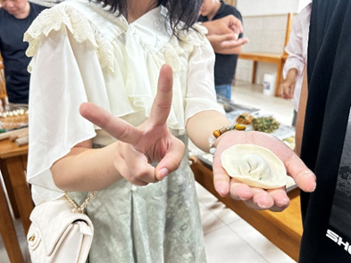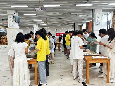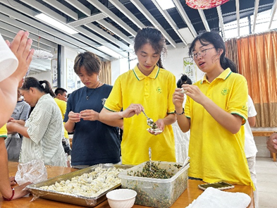 在座谈会开始前,师生代表们齐聚梅山校区第一餐厅三楼共同参与了“庆佳节”包饺子活动。擀皮、调馅、捏边,同学们从动作生硬到娴熟的完成一个个形状各异的水饺,在一片欢声笑语中,师生们不仅增进了感情,还品尝到了自己亲手制作的美味饺子。此外,学校餐厅还为新生们准备了爱心月饼,增添了节日的气氛。