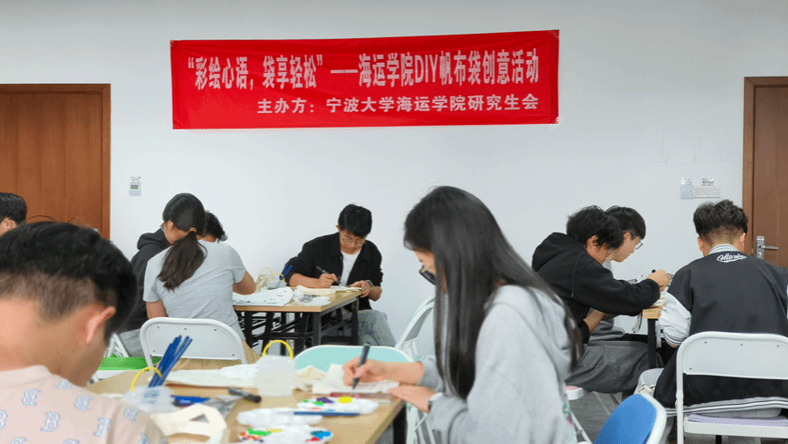随着时间的推移,一幅幅精美的帆布袋作品逐渐呈现,不仅展示了同学们的艺术才华,更体现了他们对海运文化的独特理解。同学们纷纷表示,此次活动不仅让他们学会了绘制与海运相关的图案,更重要的是在创作过程中感受到了前所未有的放松和愉悦,有效缓解了学习压力。