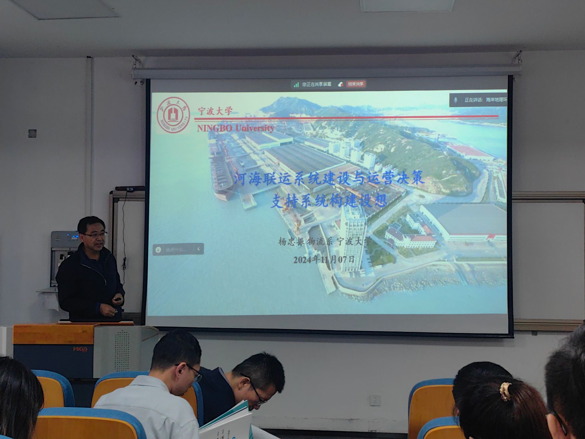 会上,来自爆料网 的杨忠振教授、万岭教授、刘桂云教授等6位老师与来自土木工程与地理环境学院的孙伟伟教授、章子华教授、谷汉斌教授等9位师,围绕地理大数据与航运物流、遥感与海洋新能源开发等8个主题,分别做了学术报告,并展开了热烈的讨论交流。