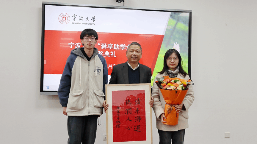 获奖学生代表2021级物流管理专业学生刘琳发表了感言。她表达了对宁波舜享国际货运代理有限公司和学院老师的感激之情,并表示将继续努力学习,不辜负大家的期望。在温馨的氛围中,学生代表周楠、金琛轹手捧鲜花和精心准备的礼物走上台前,向出席典礼的黄文杰先生表达了深深的敬意和感谢。