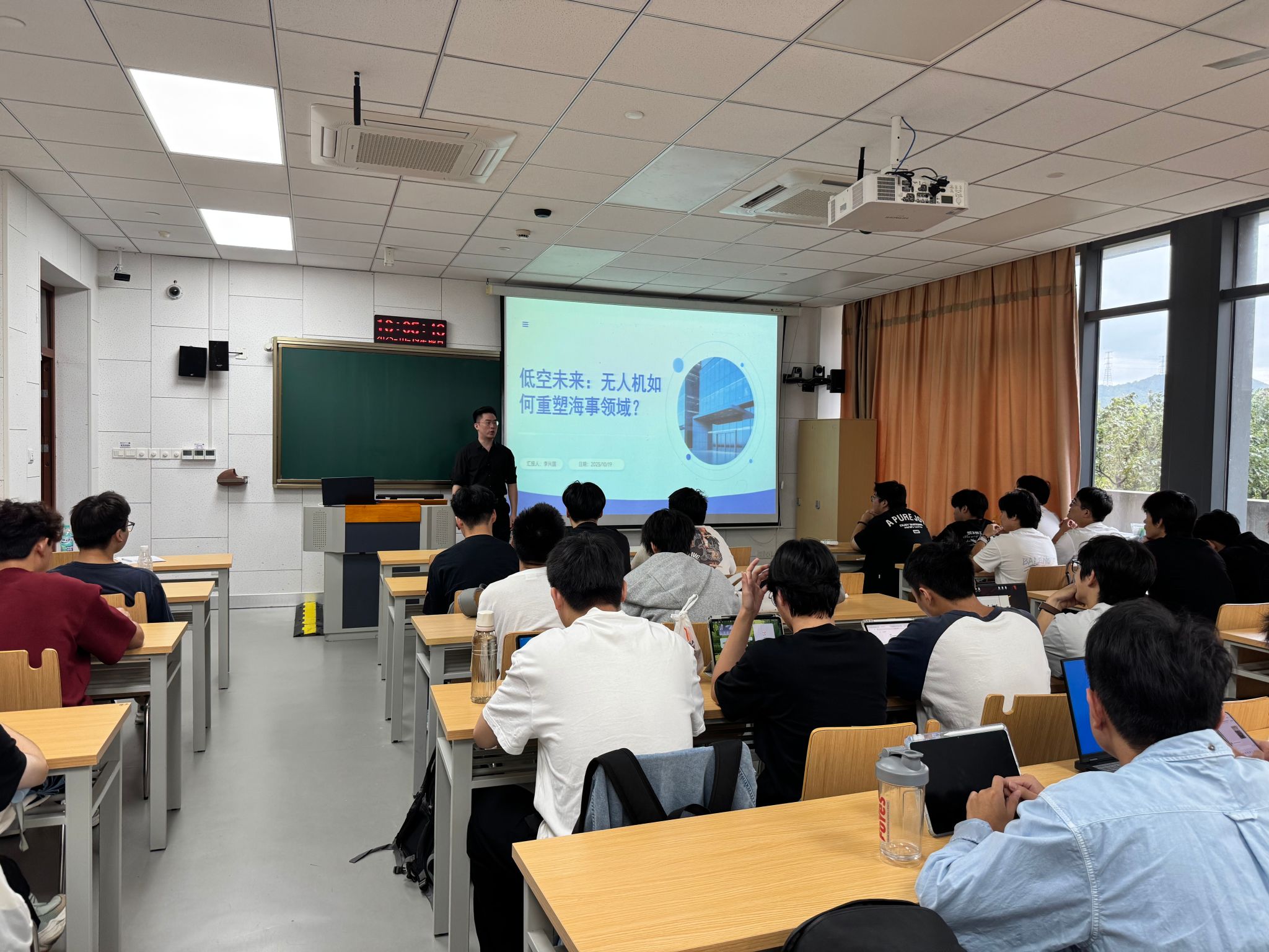 学院邀请浙江宁航无人机科技有限公司五位深行业专家组成教学团队,开展系统性课堂理论教学。课程内容紧密结合无人机行业发展趋势与岗位需求,重点讲解无人机飞行原理、航空法律法规、设备维护保养、应急故障处理等核心知识。理论课堂通过案例分析、小组讨论等互动式教学方法,将抽象的理论知识与实际应用场景相结合,帮助学生厘清无人机系统构成、飞行参数设置等关键要点。“老师通过分析实际飞行中的突发情况,让我们明白了理论知识在安全飞行中的重要性,也为后续的实践操作打下了坚实基础。”2023级船舶与海洋工程专业学生李同学说道。