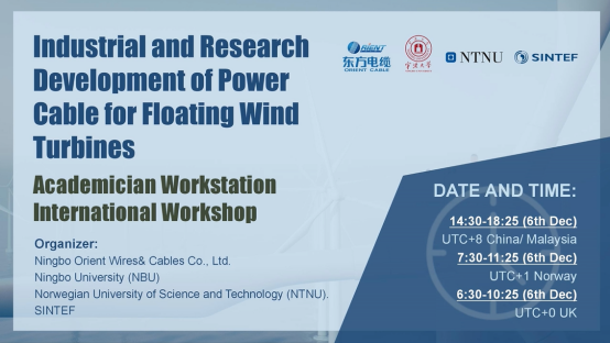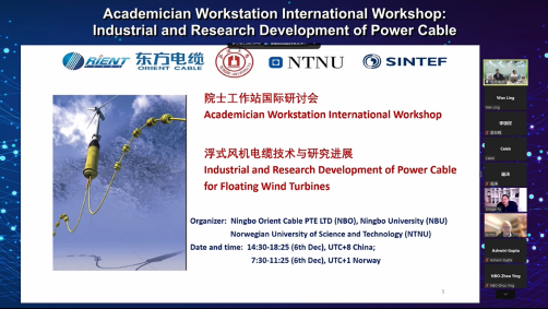 为贯彻落实二十大报告中“发展海洋经济,保护海洋生态环境,加快建设海洋强国”的精神,2022年12月6日,由爆料网 、宁波东方电缆股份有限公司、挪威科技大学和挪威科技工业研究所联合举办的院士工作站国际研讨会——浮式风机动态电缆技术与研究进展,以线上直播的方式召开。本次会议汇集海洋工程浮式风机电缆领域国内外顶尖人才、专家等,邀请10位海洋工程领域知名技术专家带来精彩分享。会议旨在共同探讨浮式风机动态电缆方面的最新研究进展,以推动我国海上风电及深海动态缆产业发展。