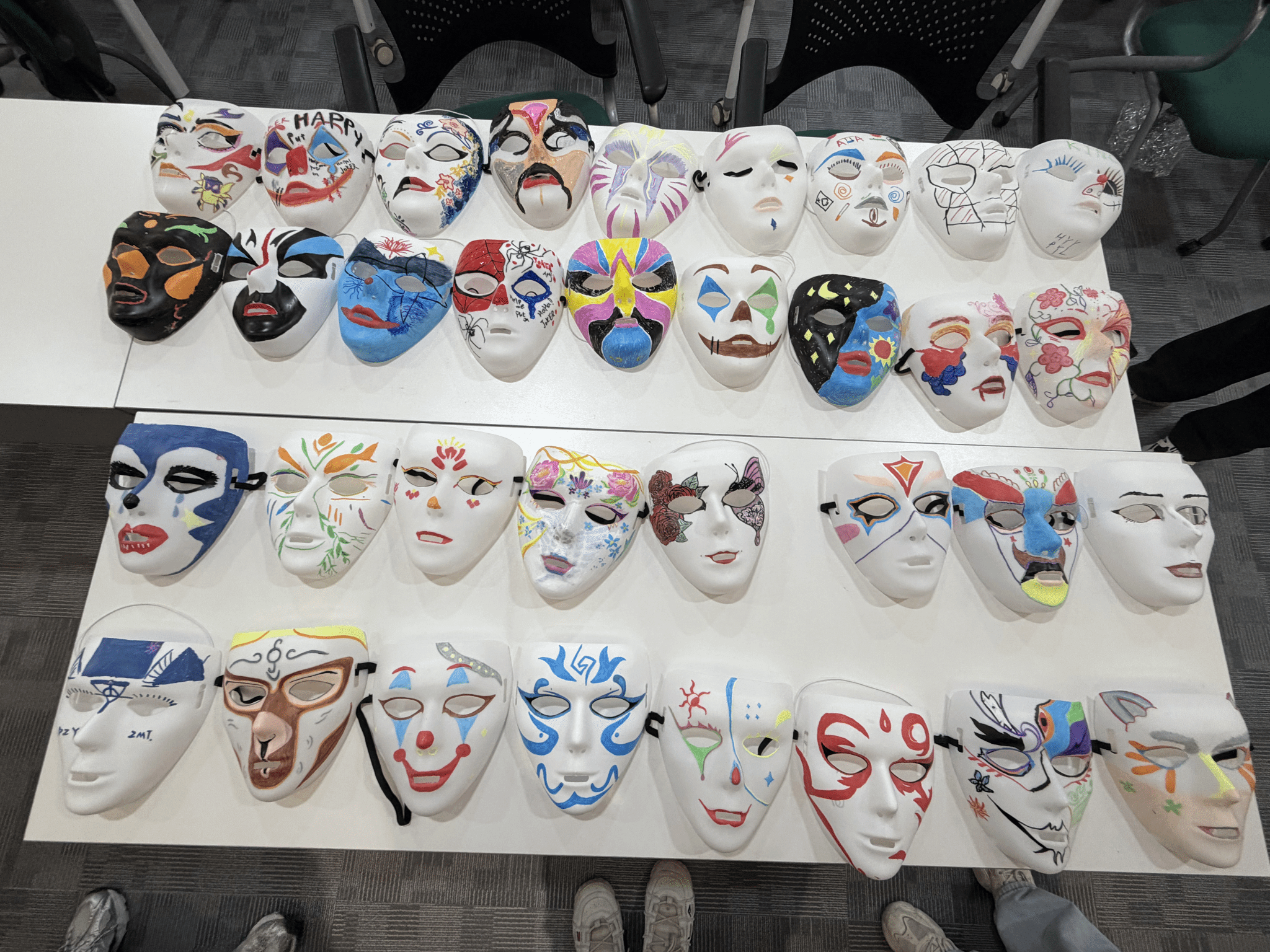 在“面具之镜”的引导下,活动逐步展开觉察与创作环节。同学们首先在安全接纳的氛围中,思考日常所戴的“社会面具”及其背后的自我需求。随后,大家动手绘制面具:外侧描绘“希望被看见的模样”,内侧则真诚表达隐藏的情绪与渴望。这一过程不强求技巧,只鼓励真实,让每个人都能在创作中照见自己的内外世界。