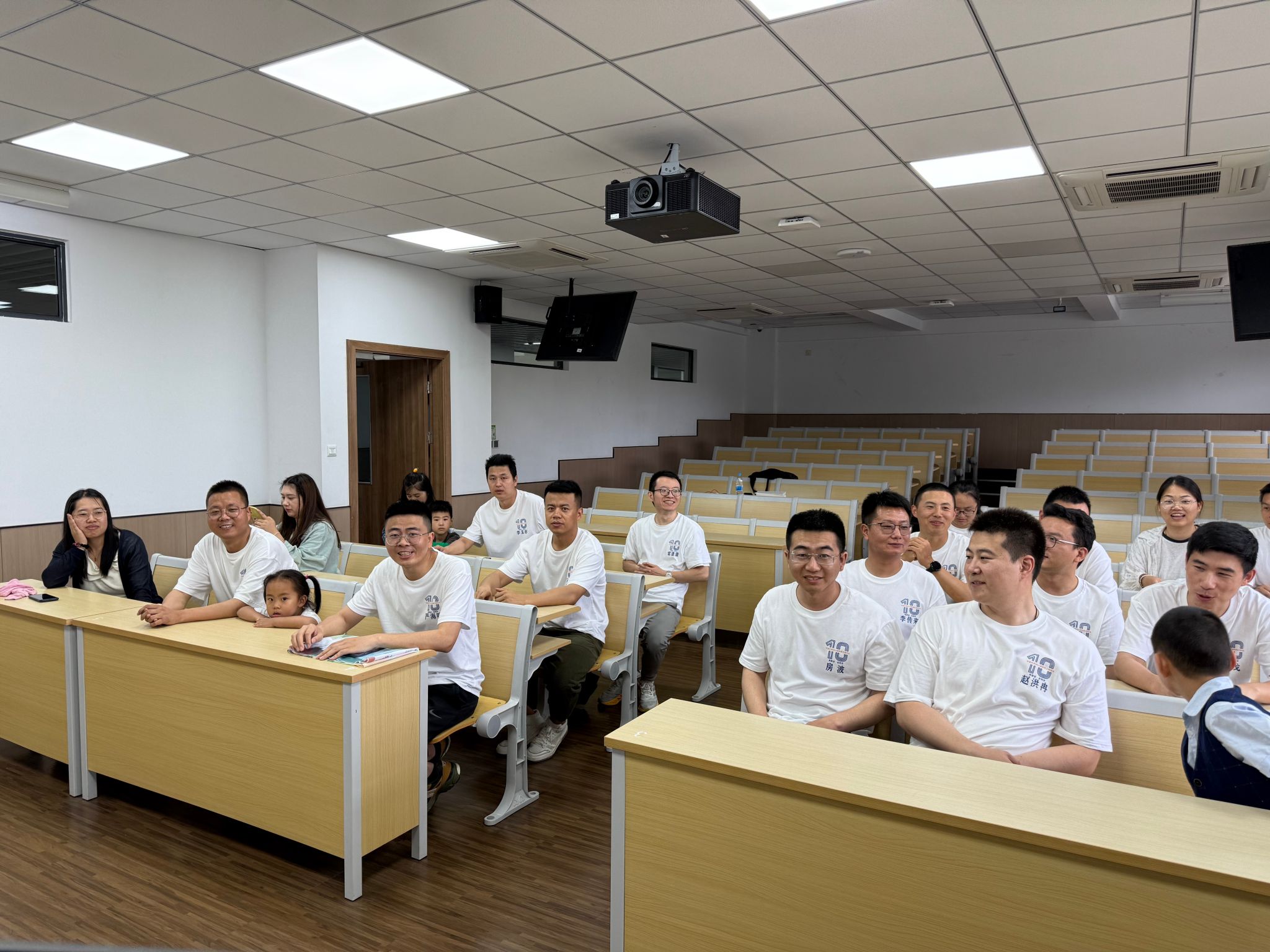 上午9时30分,校友们陆续抵达梅山校区海运楼1409会议室。签到处精心准备了印有全体同学名字的纪念文化衫,校友们换上统一的服装,瞬间拉近了彼此的距离。十年未见的老同学相拥寒暄,会议室里笑声不断。“虽然下着大雨,但大家热情一点没减,连家属小朋友都跟着兴奋!”活动组织者、老班长严海鸣感慨道。