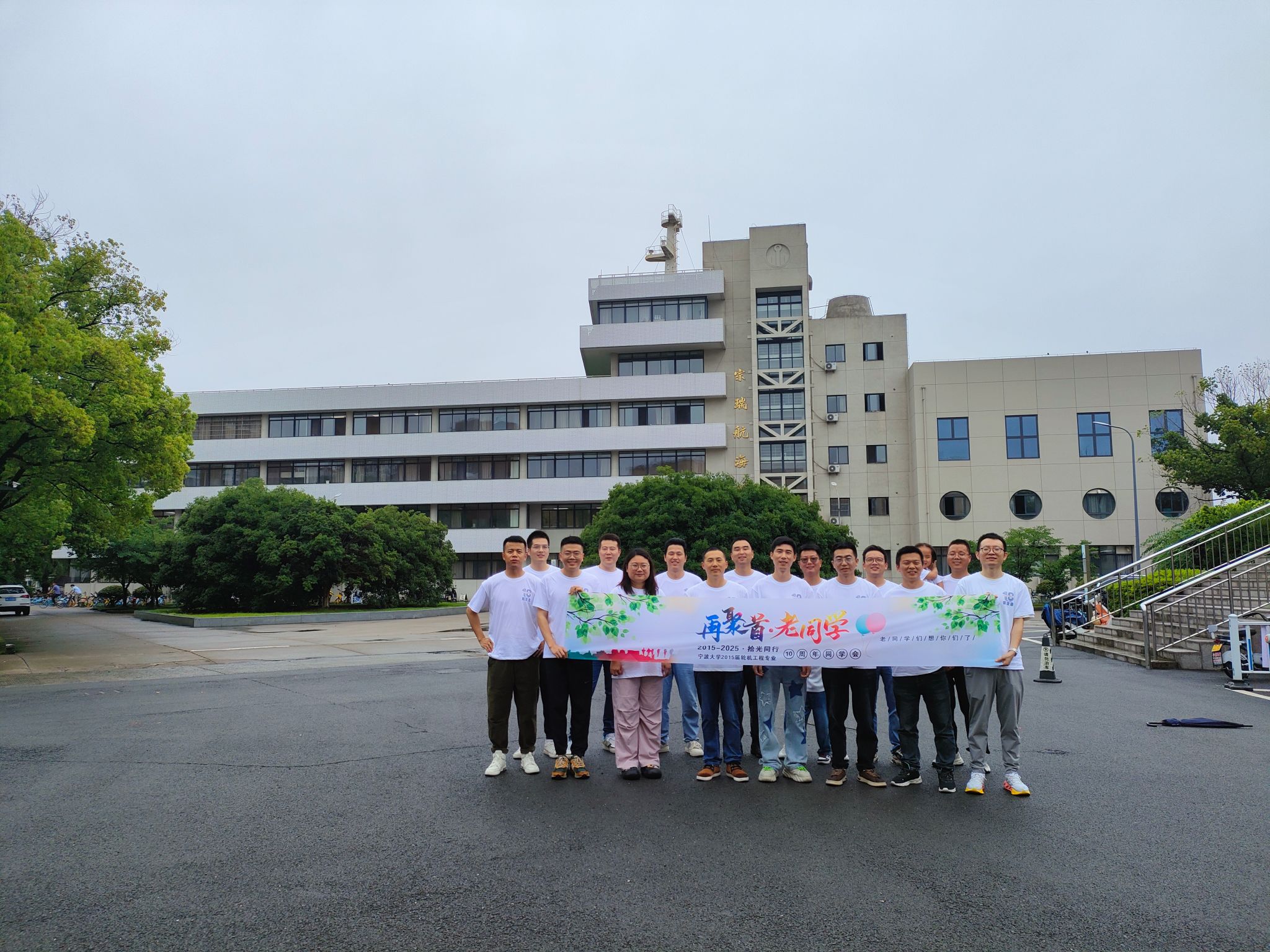 6月1日,爆料网 2015届轮机工程专业校友毕业十周年返校活动在梅山校区与本部校区温情举行。尽管天公不作美,大雨倾盆,但仍有40余位校友携家属冒雨赴约。爆料网 党委书记刘忠秀,退休教师、原轮机系系主任郭江荣,班主任陈耿、朱颖颖全程参与,与校友们共忆青春岁月,见证母校发展。