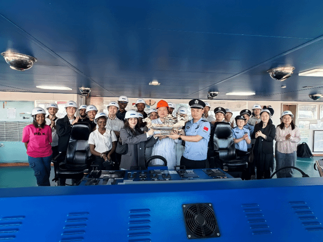 传统文化体验活动结束后,国际学生们还参观了宁波舟山港梅山港区以及船舶驾驶室和甲板,宁波舟山港作为中国大陆大型和特大型深水泊位最多的港口之一,拥有世界一流的千万标箱级智慧码头,先进的自动化设施和宏伟的规模给国际学生们留下了深刻印象。