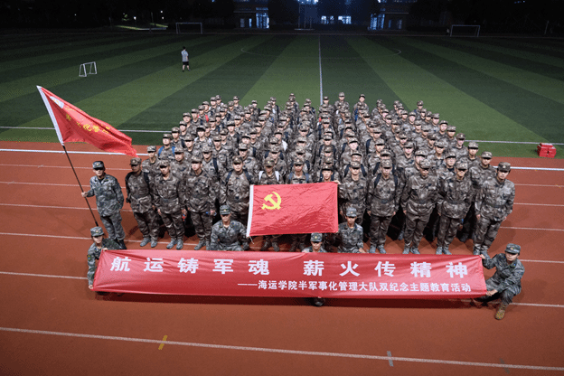 下午5点,梅山校区操场队列整齐、旗帜飘扬。一中队全体学员精神抖擞,率先集结,活动在庄重的启动仪式中拉开序幕。全体师生齐声高唱《强军战歌》,激昂的旋律展现海运学子昂扬的精神风貌。合影时刻,一张张坚毅的面孔,无声传递出“强国有我、航运有我”的青春誓言。